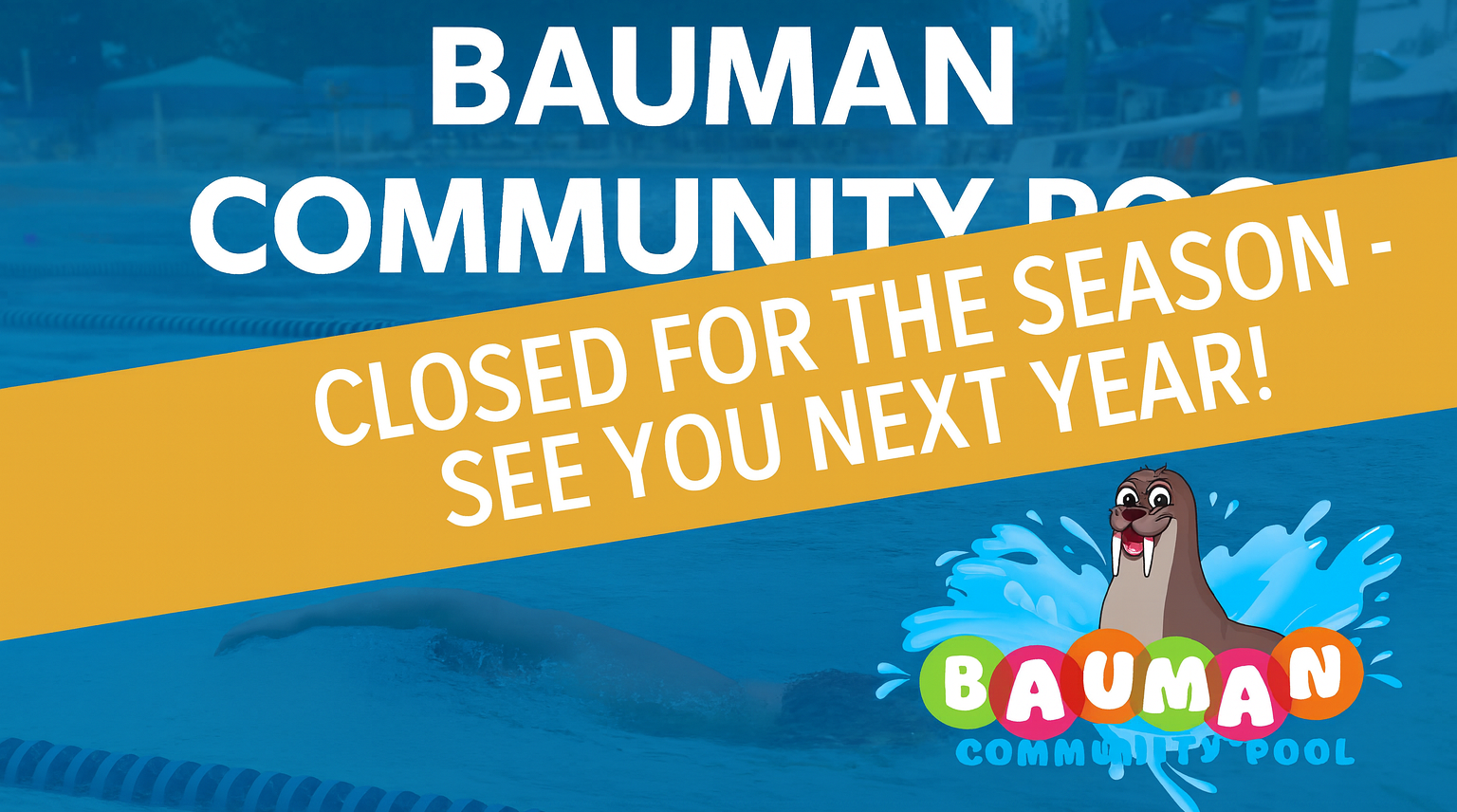 The Bauman Community Pool will be closed if the air temperature is 60 degrees Fahrenheit or lower. In the event of an air quality alert, the pool may be closed as recommended by Public Health. Please visit our webpage or social media for the latest announcements.