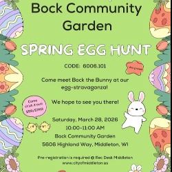 Join Bock the Bunny at Bock Community Garden for a fun morning of eggs, prizes, and family activities.